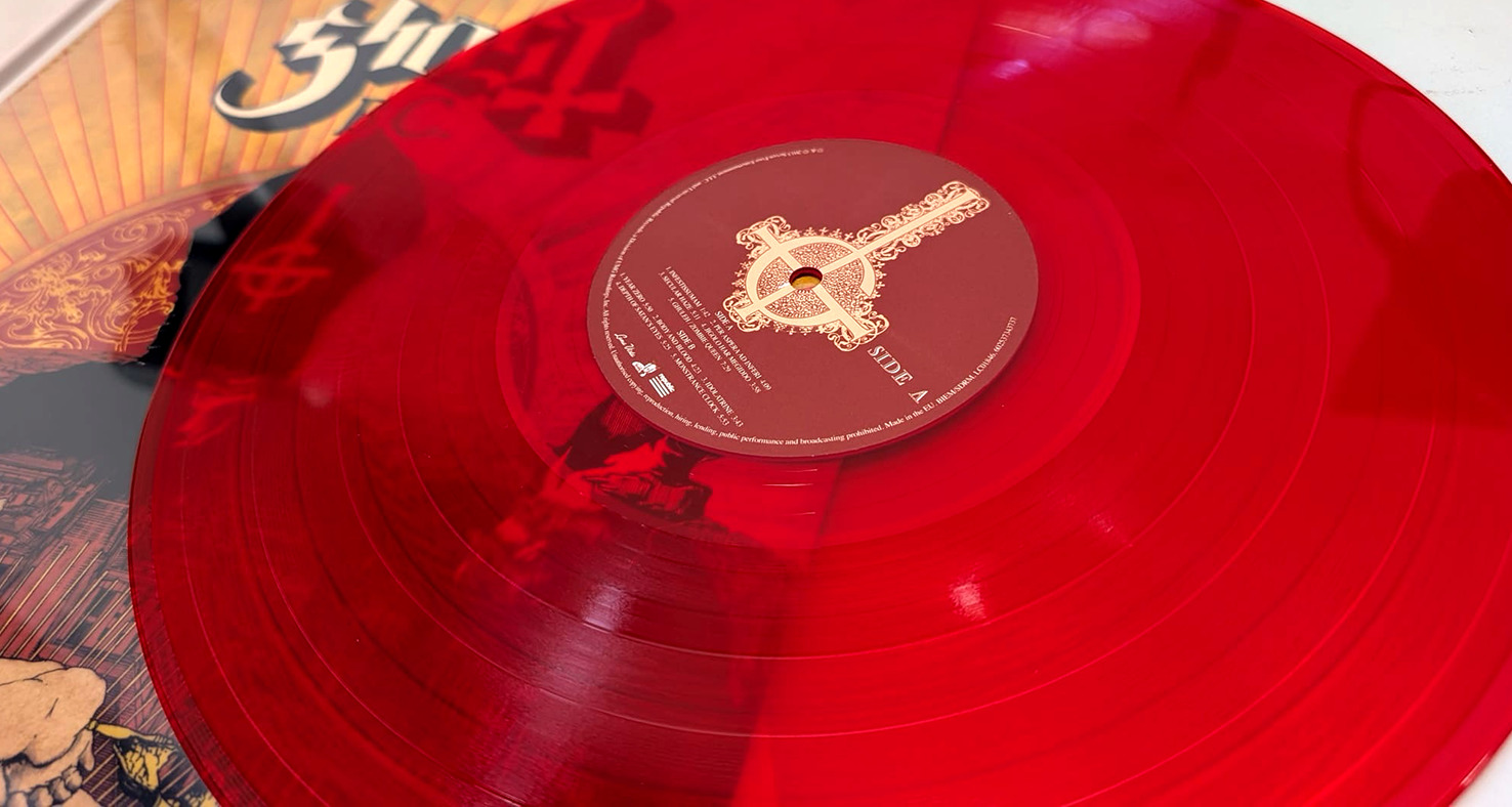 Coloured red vinyl in a Gatefold Cover