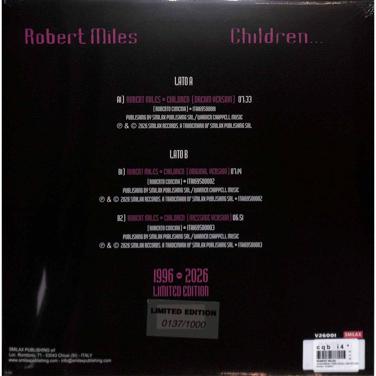 (1996-2026) LIMITED NUMBERED EDITION (RED FUCHSIA COL 12 INCH)